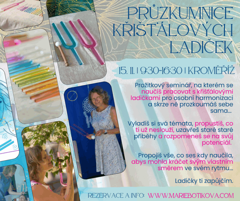 Prozkoumej, jak vibrace křišťálových ladiček dokáže uvolnit tvé tělo, zklidnit mysl a propojit tě s tvou vnitřní moudrostí. Uvolni stres, naber novou sílu a víru v sebe.