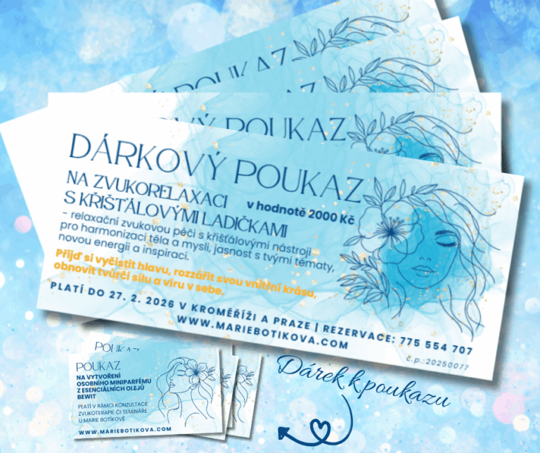Krásné dárkové poukazy na relaxaci s křišťálovými nástroji + další dárečky uvnitř